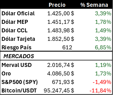 Mientras tanto, el Merval en dólares se mantiene cómodo cerca de los 2.000 puntos, consolidando niveles y mostrando un mercado que, pese a la volatilidad, sigue con una base firme.
