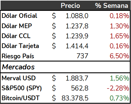 📌 Conclusión: La incertidumbre política sigue afectando a los mercados, lo que se refleja en la suba del tipo de cambio y el riesgo país.