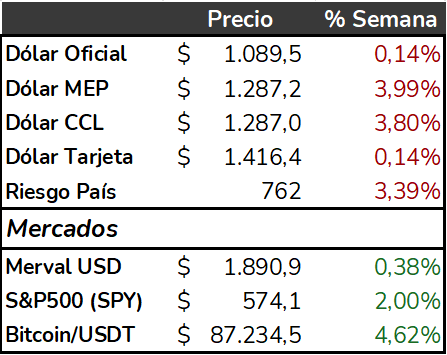 🌾 Dato para mirar: En los próximos meses, se espera la liquidación de divisas del agro, especialmente por la cosecha de soja. Este ingreso de dólares podría aliviar la presión cambiaria y darle algo de oxígeno al BCRA.