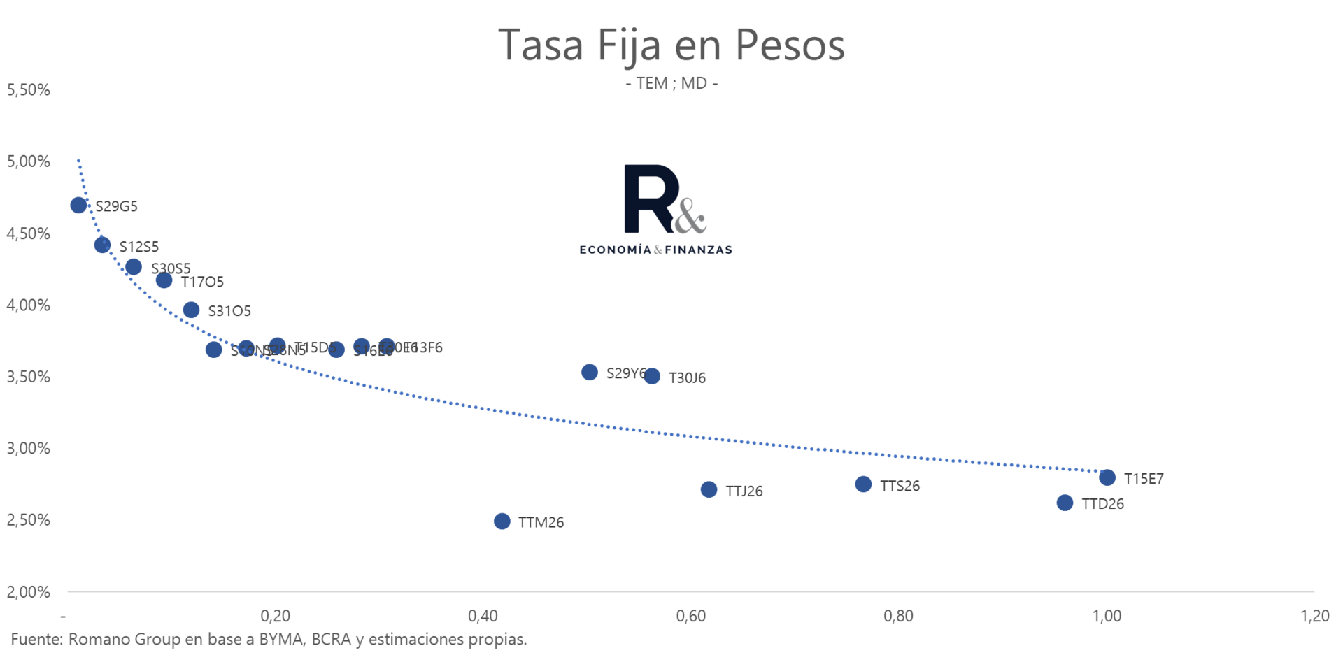 Tasas altas por elecciones: reconoció que la suba en cauciones y en la tasa en pesos es algo “coyuntural”, provocado por la incertidumbre política. Según él, una vez que pasen las elecciones, esa volatilidad debería bajar.